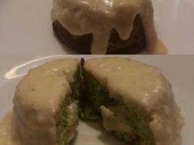 Elmuldaĵetoj el brokoloj kaj molfromaĝo kaj saŭco de fromaĝo