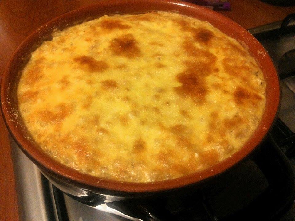 Ni malfermu la ovojn en bovlo kaj batmiksu aldonita la nigran pipron. Poste ni aldonu la grenon kaj miksu bone. Ni tranĉu la fromaĝon en kuboj kaj aldonu ĝin al miksaĵo kaj miksu ĝis ni obtenas homogenan miksaĵon. Ni grasmakulu la kaserolon kaj ni verŝu la miksaĵon interne. Ni kovru la miksaĵon kun la parmezano. Ni baku por 10/15 minutoj en jam varma forno al 180 gradoj. Antaŭ servi, ni lasu ripozi dum ĉirkaŭ 20/30 minutoj.